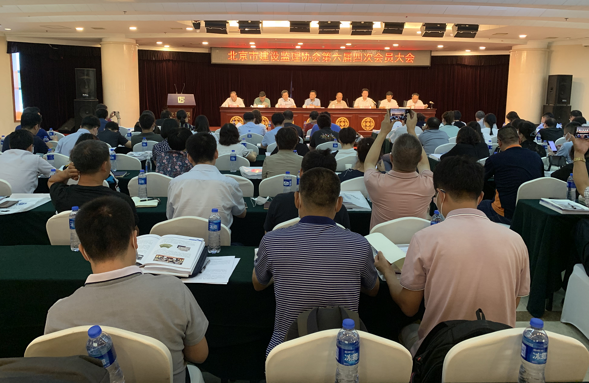 北京市建设监理协会在大方饭店召开第六届第四次会员大会。市监理协会会长李伟、副会长张铁明、高玉亭、刘秀船、孙琳、黄强、监事长潘自强到会,北京市住房和城乡建设委员会质量处正处级调研员于扬到会并讲话,187...